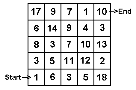 The puzzle this month is to trace a route through the above 5 x 5 matrix, starting in the bottom left corner with a value of 1 and ending at the top right. You can move only right one square or up one square. When you move right you ADD the value of the new square to your total. When you move up you MULTIPLY by the new square value. The object is to maximise your final score. The winner is the competitor with the highest score (shared by a random draw if more than one with the same maximum). ANSWER The best result was 72,030 obtained by the following path (R=Right, U=Up): R(7), R(10), R(15), U(180), U(1800), U(7200), R(7203), U(72030). I received four answers with this total plus two other answers that were not optimum. Thank you for all of them. The four who had the maximum were Richard Burkhill, John Stafford (who won the draw), Alan Ash and Clem Robertson. Other entrants were Barry Cant and John Moxon. |
